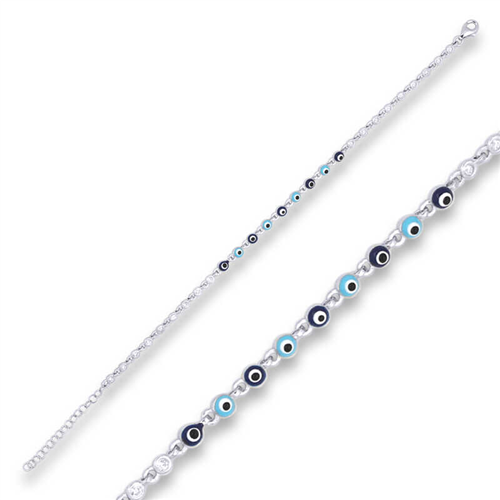 Silver Evil Eye Beaded BraceletPeople have used the evil eye bead for many years to protect themselves from evil looks. It is a precaution against the negative effects of evil looks on people, the evil eye bead… For this reason, people wear the evil eye bead to protect their loved ones. This evil eye bead bracelet reflects elegance and style. You can choose this model, which has always been popular and does not compromise on its elegance, as a birthday gift, Valentine's Day gift or a gift for mothers on special occasions. The silver evil eye women's bracelet is made of 925 sterling silver. Rhodium plated silver. Rhodium plated silver women's bracelets preserve their shine for a long time and oxidation is delayed. The stones on it are zircon. Like all silver women's bracelets, this silver evil eye bead women's bracelet model is entirely handmade. Due to silver and precious stones, there may be a ± 10% deviation in the average product weight.Width: 0.40 cmLength: 0.40 cmAverage Weight: 4.10 gr.Chain length: 20.00 cm