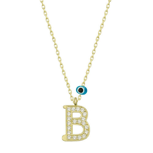 Silver Evil Eye Gold Letter B Women's Necklace With silver letter necklaces, those who are precious to you are always with you... Decorate your loved one's neck with love with this special necklace model that young lovers can choose on special occasions. A silver letter necklace that your loved ones will wear with pleasure will be one of the most meaningful gifts. The evil-eye letter women's necklace model is made of 925 sterling silver. Gold plated on silver. Gold plated silver women's necklace models preserve their shine for a long time. As with all of our products, the silver women's letter necklace model is produced by hand. Due to silver and precious stones, there may be ± 10% deviation from the average product weight. Width: 0.80 cm Length: 1.10 cm Avg. Weight: 1.40 g
