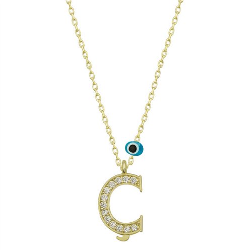 Silver Evil Eye Gold Letter C Women's Necklace With silver letter necklaces, those who are precious to you are always with you... Decorate your loved one's neck with love with this special necklace model that young lovers can choose on special occasions. A silver letter necklace that your loved ones will wear with pleasure will be one of the most meaningful gifts. The evil eye letter women's necklace model is made of 925 sterling silver. Gold plated on silver. Gold plated silver women's necklace models preserve their shine for a long time. As with all of our products, the silver women's letter necklace model is produced by hand. Due to silver and precious stones, there may be ± 10% deviation from the average product weight. Width: 0.80 cm Length: 1.10 cm Avg. Weight: 1.40 g
