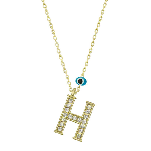 Silver Evil Eye Gold Letter H Women's Necklace With silver letter necklaces, those who are precious to you are always with you... Decorate your loved one's neck with love with this special necklace model that young lovers can choose on special occasions. A silver letter necklace that your loved ones will wear with pleasure will be one of the most meaningful gifts. The evil eye letter women's necklace model is made of 925 sterling silver. Gold plated on silver. Gold plated silver women's necklace models preserve their shine for a long time. As with all of our products, the silver women's letter necklace model is produced by hand. Due to silver and precious stones, there may be ± 10% deviation from the average product weight. Width: 0.80 cm Length: 1.10 cm Avg. Weight: 1.40 g