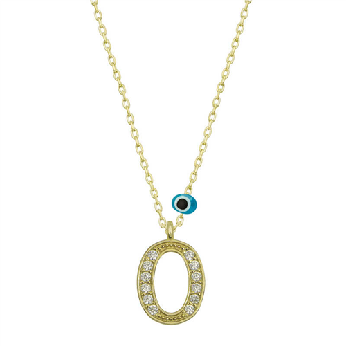 Silver Evil Eye Gold Letter O Women's Necklace With silver letter necklaces, those who are precious to you are always with you... Decorate your loved one's neck with love with this special necklace model that young lovers can choose on special occasions. A silver letter necklace that your loved ones will wear with pleasure will be one of the most meaningful gifts. The evil eye letter women's necklace model is made of 925 sterling silver. Gold plated on silver. Gold plated silver women's necklace models preserve their shine for a long time. As with all of our products, the silver women's letter necklace model is handmade. Due to silver and precious stones, there may be ± 10% deviation from the average product weight. Width: 0.80 cm Length: 1.10 cm Avg. Weight: 1.40 g