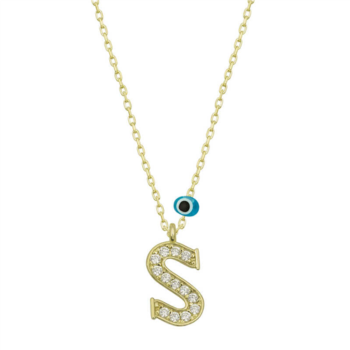 Silver Evil Eye Gold Letter S Women's Necklace With silver letter necklaces, those who are precious to you are always with you... Decorate your loved one's neck with love with this special necklace model that young lovers can choose on special occasions. A silver letter necklace that your loved ones will wear with pleasure will be one of the most meaningful gifts. The evil eye letter women's necklace model is made of 925 sterling silver. Gold plated on silver. Gold plated silver women's necklace models preserve their shine for a long time. As with all of our products, the silver women's letter necklace model is produced by hand. Due to silver and precious stones, there may be ± 10% deviation from the average product weight. Width: 0.80 cm Length: 1.10 cm Avg. Weight: 1.40 g