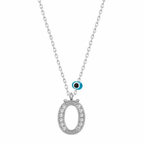 Silver Evil Eye Rhodium Letter Ö Women's Necklace With silver letter necklaces, those who are precious to you are always with you... Decorate your loved one's neck with love with this special necklace model that young lovers can choose on special occasions. A silver letter necklace that your loved ones will wear with pleasure will be one of the most meaningful gifts. The evil eye letter women's necklace model is made of 925 sterling silver. Rhodium plated silver. Rhodium plated silver women's necklace models preserve their shine for a long time. As with all of our products, the silver women's letter necklace model is handmade. Due to silver and precious stones, there may be ± 10% deviation from the average product weight. Width: 0.80 cm Length: 1.10 cm Avg. Weight: 1.40 gr
