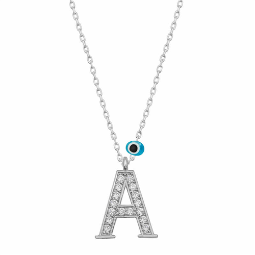 Silver Evil Eye Rhodium Letter A Women's Necklace With silver letter necklaces, those who are precious to you are always with you... Decorate your loved one's neck with love with this special necklace model that young lovers can choose on special occasions. A silver letter necklace that your loved ones will wear with pleasure will be one of the most meaningful gifts. The evil eye letter women's necklace model is made of 925 sterling silver. Rhodium plated silver. Rhodium plated silver women's necklace models preserve their shine for a long time. As with all of our products, the silver women's letter necklace model is handmade. Due to silver and precious stones, there may be ± 10% deviation from the average product weight. Width: 0.80 cm Length: 1.10 cm Avg. Weight: 1.40 gr