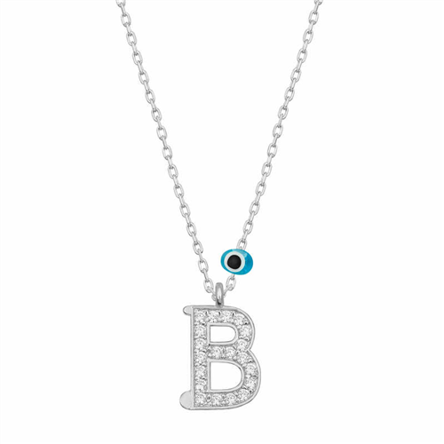 Silver Evil Eye Rhodium Letter B Women's Necklace With silver letter necklaces, those who are precious to you are always with you... Decorate your loved one's neck with love with this special necklace model that young lovers can choose on special occasions. A silver letter necklace that your loved ones will wear with pleasure will be one of the most meaningful gifts. The evil eye letter women's necklace model is made of 925 sterling silver. Rhodium plated silver. Rhodium plated silver women's necklace models preserve their shine for a long time. As with all of our products, the silver women's letter necklace model is handmade. Due to silver and precious stones, there may be ± 10% deviation from the average product weight. Width: 0.80 cm Length: 1.10 cm Avg. Weight: 1.40 gr