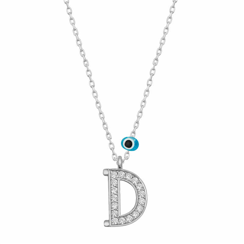 Silver Evil Eye Rhodium Letter D Women's Necklace With silver letter necklaces, those who are precious to you are always with you... Decorate your loved one's neck with love with this special necklace model that young lovers can choose on special occasions. A silver letter necklace that your loved ones will wear with pleasure will be one of the most meaningful gifts. The evil eye letter women's necklace model is made of 925 sterling silver. Rhodium plated silver. Rhodium plated silver women's necklace models preserve their shine for a long time. As with all of our products, the silver women's letter necklace model is handmade. Due to silver and precious stones, there may be ± 10% deviation from the average product weight. Width: 0.80 cm Length: 1.10 cm Avg. Weight: 1.40 gr