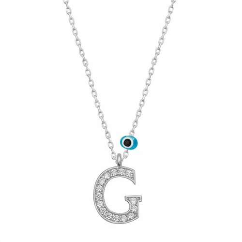 Silver Evil Eye Rhodium Letter G Women's Necklace With silver letter necklaces, those who are precious to you are always with you... Decorate your loved one's neck with love with this special necklace model that young lovers can choose on special occasions. A silver letter necklace that your loved ones will wear with pleasure will be one of the most meaningful gifts. The evil eye letter women's necklace model is made of 925 sterling silver. Rhodium plated silver. Rhodium plated silver women's necklace models preserve their shine for a long time. As with all of our products, the silver women's letter necklace model is handmade. Due to silver and precious stones, there may be ± 10% deviation from the average product weight. Width: 0.80 cm Length: 1.10 cm Avg. Weight: 1.40 gr