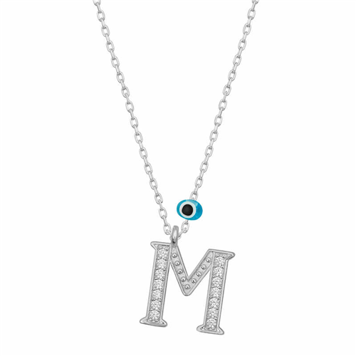 Silver Evil Eye Rhodium Letter M Women's Necklace With silver letter necklaces, those who are precious to you are always with you... Decorate your loved one's neck with love with this special necklace model that young lovers can choose on special occasions. A silver letter necklace that your loved ones will wear with pleasure will be one of the most meaningful gifts. The evil eye letter women's necklace model is made of 925 sterling silver. Rhodium plated silver. Rhodium plated silver women's necklace models preserve their shine for a long time. As with all of our products, the silver women's letter necklace model is handmade. Due to silver and precious stones, there may be ± 10% deviation from the average product weight. Width: 0.80 cm Length: 1.10 cm Avg. Weight: 1.40 gr