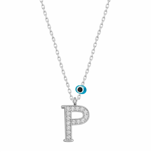 Silver Evil Eye Rhodium Letter P Women's Necklace With silver letter necklaces, those who are precious to you are always with you... Decorate your loved one's neck with love with this special necklace model that young lovers can choose on special occasions. A silver letter necklace that your loved ones will wear with pleasure will be one of the most meaningful gifts. The evil-eye letter women's necklace model is made of 925 sterling silver. Rhodium plated silver. Rhodium-plated silver women's necklace models preserve their shine for a long time. As with all of our products, the silver women's letter necklace model is handmade. Due to silver and precious stones, there may be ± 10% deviation from the average product weight. Width: 0.80 cm Length: 1.10 cm Avg. Weight: 1.40 gr