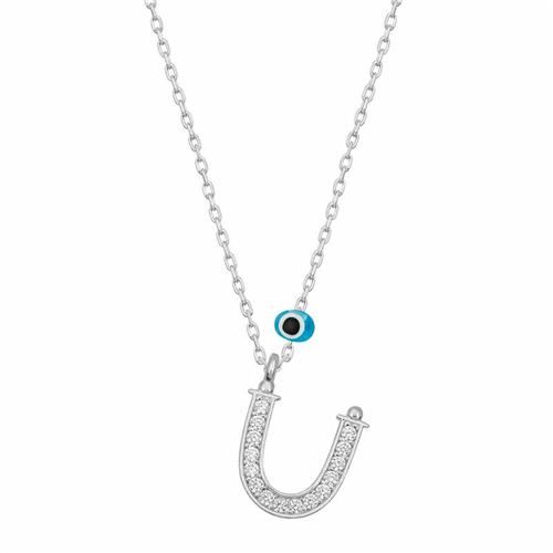 Silver Evil Eye Rhodium Letter Ü Women's Necklace With silver letter necklaces, those who are precious to you are always with you... Decorate your loved one's neck with love with this special necklace model that young lovers can choose on special occasions. A silver letter necklace that your loved ones will wear with pleasure will be one of the most meaningful gifts. The evil eye letter women's necklace model is made of 925 sterling silver. Rhodium plated silver. Rhodium plated silver women's necklace models preserve their shine for a long time. As with all of our products, the silver women's letter necklace model is handmade. Due to silver and precious stones, there may be ± 10% deviation from the average product weight. Width: 0.80 cm Length: 1.10 cm Avg. Weight: 1.40 gr