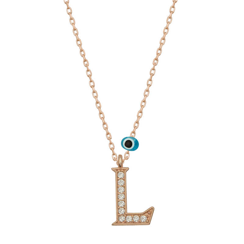 Silver Evil Eye Rose Letter L Women's Necklace With silver letter necklaces, those who are precious to you are always with you... Decorate your loved one's neck with love with this special necklace model that young lovers can choose on special occasions. A silver letter necklace that your loved ones will wear with pleasure will be one of the most meaningful gifts. The evil eye letter women's necklace model is made of 925 sterling silver. Rose plated silver. Rose plated silver women's necklace models preserve their shine for a long time. As with all of our products, the silver women's letter necklace model is handmade. Due to silver and precious stones, there may be ± 10% deviation from the average product weight. Width: 0.80 cm Length: 1.10 cm Avg. Weight: 1.40 gr