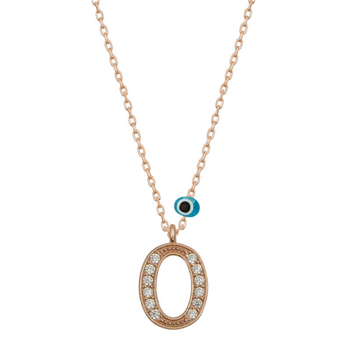 Silver Evil Eye Rose Letter O Women's Necklace With silver letter necklaces, those who are precious to you are always with you... Decorate your loved one's neck with love with this special necklace model that young lovers can choose on special occasions. A silver letter necklace that your loved ones will wear with pleasure will be one of the most meaningful gifts. The evil eye letter women's necklace model is made of 925 sterling silver. Rose plated silver. Rose plated silver women's necklace models preserve their shine for a long time. As with all of our products, the silver women's letter necklace model is handmade. Due to silver and precious stones, there may be ± 10% deviation from the average product weight. Width: 0.80 cm Length: 1.10 cm Avg. Weight: 1.40 gr