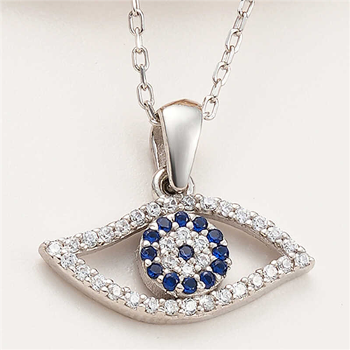 Silver Evil Eye Women's Necklace Various talismans have been used in many cultures to protect against the harms of bad energy. The talisman used in most Eastern cultures is the eye. The evil eye bead is also designed inspired by the shape of the eye. The choice of blue color is no coincidence. Evil eye beads are mostly designed in blue due to the belief that people with colored eyes reflect their energy more effectively. You can gift the dazzling silver evil eye necklace to those you want to protect from the evil eye and to your loved ones. The silver necklace is rhodium plated. Rhodium plated silver women's necklaces preserve their shine for a long time and oxidation is delayed. The average silver chain length is 45 cm. All of our products are handmade. Due to silver and precious stones, there may be ± 10% deviation in product weight. Width: 1.80 cm Length: 1.00 cm Chain Length: 45.00 cm Avg. Weight: 2.70 gr