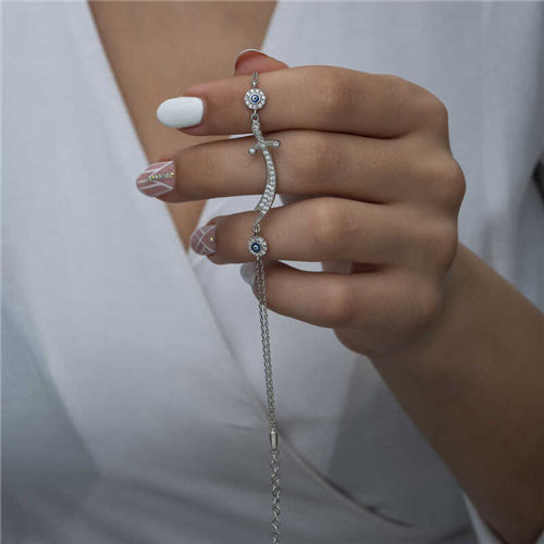 Silver Evil Eye Zulfiqar Sword Women's BraceletHz. Ali showed great heroism in the Battle of Uhud. While trying to protect the Prophet in the battle, his sword broke. Seeing this, the Prophet gave his own sword, Zulfiqar, to him. With the sharpness of the sword, he split other swords in half and had epics written in battles. Hz. Ali is now in battle with his Zulfiqar sword. It is believed that the sword was taken to heaven after the death of Ali. Another narration states that it lies between the Tigris and Euphrates Rivers. The person who will rule the Islamic armies will own that sword and become their commander-in-chief. This design, crafted with this spirituality, is very striking. This stylish bracelet is a perfect choice for birthday gifts, Valentine's Day gifts, or special occasions as a gift for mothers. The Zulfiqar sword women's bracelet model is made of 925 sterling silver. The stones in this special design are zircon. This women's silver bracelet is rhodium-plated. Rhodium-plated bracelets retain their shine for a long time and delay oxidation. As with all silver bracelets, this silver Zulfiqar sword women's bracelet model with the evil eye is also handcrafted. Due to the silver and precious stones, there may be a ±10% deviation from the stated average product weight.Zulfiqar Sword Width: 1.00 cmZulfiqar Sword Length: 5.00 cmBracelet Length: 20.00 cmAverage Weight: 3.20 gr.