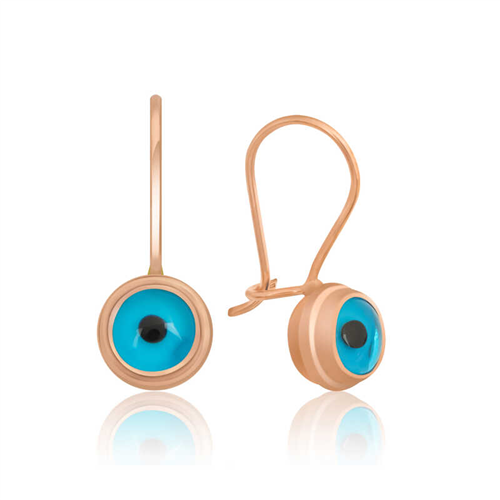 Silver Eye Dangle Rose Evil Eye EarringVarious talismans have been used in many cultures to protect against the harms of bad energy. The talisman used in most Eastern cultures is the eye. The evil eye bead is also inspired by the shape of the eye. The choice of blue color is no coincidence. Evil eye beads are mostly designed in blue due to the belief that people with colored eyes reflect their energy more effectively. You can gift evil eye earrings to people who dazzle with their beauty and whom you want to protect from the evil eye and to your loved ones. This evil eye women's earring is made of 925 sterling silver. Rose plated on the silver. Rose plated silver earring models preserve their shine for a long time and oxidation is delayed. The evil eye bead on the earring is made of glass. This eye dangling earring model, like all other silver dangling earring models, is produced by hand. Due to silver and precious stones, there may be a ± 10% deviation in the average product weight.Width: 0.90 cm.Length: 2.40 cm.Average Weight: 3.75 gr.