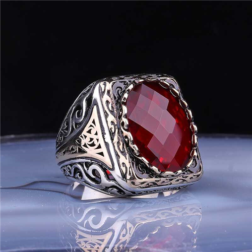 Silver Moroccan Red Stone Square Male Ring is a stylish accessory that consists of red zirconia stone on silver. This male ring model is a stylish accessory that you can use every moment of the day. You can present yourself or your loved ones on the day of birth, fathers day or special days. Moroccan cutting zirconia stone male ring model is made of 925 sterling silver. oxide coating on silver is made. Oxide plated silver male ring models keep brightness for a long time. As with all male rings, silver faset red zirconia stone male ring model is also manufactured with hand labor. Due to silver and precious stones, the average product weight specified can be ± 10% deviation. Width : 2.00 cm Size : 2.30 cmOrt. Weight : 19.50 gr.