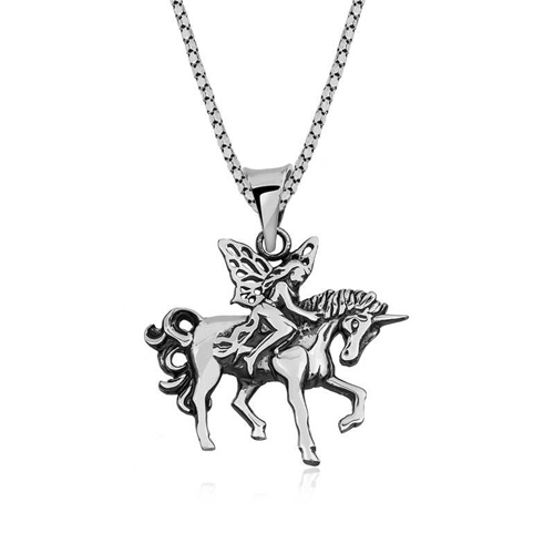 Silver Fairy Unicorn Women's NecklaceUnicorn, mythological unicorn. It has a straight horn in the middle of its head. It is a legendary animal that is believed to be pure and innocent, that drinking its blood makes the person immortal, and that killing it will bring a curse for this reason. It has been featured in different stories throughout history. If you are looking for an accessory that reflects your style, the silver fairy unicorn necklace is just for you. The necklace is made of 925 sterling silver. This necklace has an oxidized coating. Oxidized silver has an aged appearance. Like all silver necklace models, the silver fairy unicorn necklace model is also produced by hand. Due to silver and precious stones, there may be ± 10% deviation from the average product weight.Width: 3.00 cmLength: 2.70 cmAverage Weight: 9.70 gr. Chain Length: 55 cm