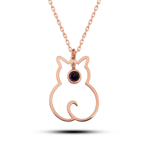 Silver February Birthstone Cat Woman Necklace Each birthstone is identified with a specific month. Amethyst is the birthstone for February. It has been revealed that people used this stone for decorative purposes even 25,000 years ago. This shows that amethyst has been used by humans since the Neolithic age. The stone represents peace, happiness, and love. It is also believed to increase the power of expression through speech and writing. Cats, the adorable source of joy in our homes, are not only clean but also a symbol of innocence. They have a noble and logical personality, excellent intuition, and a rational sensitivity. Silver jewelry, one of the most preferred gift options for special occasions, is designed for those who want to make their loved ones happy and give them a gift they can carry with them at all times. You can gift the cat-figured silver necklace, the symbol of innocence, to your sister, lover, or friends. The amethyst stone cat woman necklace is made of 925 sterling silver. Rose plating is made on silver. Rose-plated silver cat necklace models preserve their shine for a long time and oxidation is delayed. All the stones on the necklace are Amethyst. The average silver chain length is 45 cm. The silver women's cat necklace is produced by hand like all other silver women's necklace models. Due to silver and precious stones, there may be ± 10% deviation in the average product weight. Width: 1.60 cm Length: 2.30 cm Chain Length: 45 cm Average Weight: 2 gr.