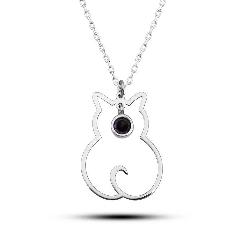Silver February Birthstone Cat Woman Necklace Each birthstone is identified with a specific month. Amethyst is the birthstone for February. It has been revealed that people used this stone for decorative purposes even 25,000 years ago. This shows that amethyst has been used by humans since the Neolithic age. The stone represents peace, happiness, and love. It is also believed to increase the power of expression through speech and writing. Cats, the adorable source of joy in our homes, are not only clean but also a symbol of innocence. They have a noble and logical personality, excellent intuition, and a rational sensitivity. Silver jewelry, one of the most preferred gift options for special occasions, is designed for those who want to make their loved ones happy and give them a gift they can carry with them at all times. You can gift the cat-figured silver necklace, the symbol of innocence, to your sister, lover, or friends. The amethyst stone cat woman necklace is made of 925 sterling silver. Rhodium plating is done on silver. Rhodium-plated silver cat necklace models preserve their shine for a long time and oxidation is delayed. All the stones on the necklace are Amethyst. The average silver chain length is 45 cm. The silver women's cat necklace is produced by hand like all other silver women's necklace models. Due to silver and precious stones, there may be ± 10% deviation from the average product weight. Width: 1.60 cm Length: 2.30 cm Chain Length: 45 cm Average Weight: 2 gr.