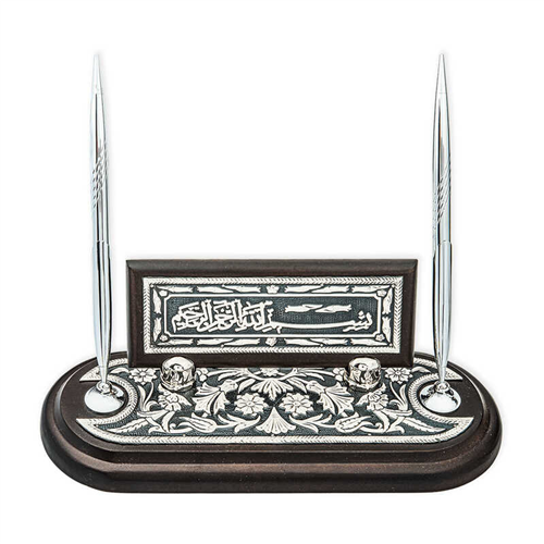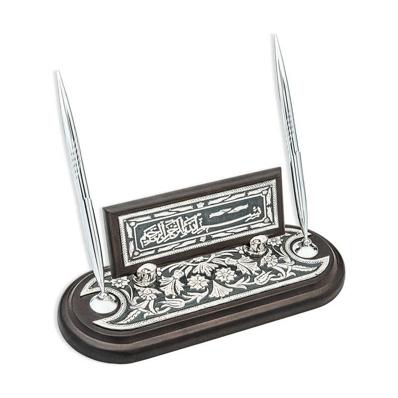 Silver Floral Patterned Basmala Desktop Pen Holder Silver accessories are one of the precious metals bought as gifts. Desktop products that you can buy as gifts for many special and important occasions such as a new job or a promotion, will leave a mark on memories. You can make your loved ones happy by gifting the originally designed silver floral patterned Arabic Basmala desktop pen holder to your loved ones. The floral patterned Basmala desktop pen holder, designed with fine workmanship in silver that can be used for many years, is one of the most special designs that can be used at any moment of the day. Silver floral patterned Basmala desktop pen holder is made of 925 sterling silver. The wooden part of the pen holder is plywood made of beech. 55 g of silver is used in the product; there may be ± 10% deviation in product weight. Width: 10.00 cm Length: 25.00 cm Height: 9.00 cm Pen Length: 16 cm Average Weight: 525 Gr