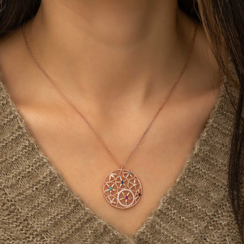 Silver Flower of Life Necklace The flower of life consists of a geometric shape consisting of many intertwined circles of equal area and a large circle outside. The center of each circle is where the circles of the surrounding circle intersect. Drunvalo Melchizedek claims that this symbol holds the secrets of the universe and life. It is a nice accessory that you can enjoy using at any moment of the day. Silver Flower of Life women's necklace is made of 925 sterling silver. This necklace is rose plated. Rose plated products preserve their shine for a long time and turn the silver into copper color. As with all silver women's necklace models, the silver Flower of Life women's necklace model is produced by hand. Due to silver and precious stones, there may be a ± 10% deviation in the average product weight. All of our products are handmade. Width: 3.00 cm Length: 3.00 cm Average Weight: 5.43 gr. Chain Length: 50 cm
