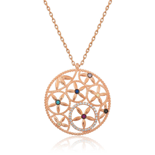 Silver Flower of Life Necklace The flower of life consists of a geometric shape consisting of many intertwined circles of equal area and a large circle outside. The center of each circle is where the circles of the surrounding circle intersect. Drunvalo Melchizedek claims that this symbol holds the secrets of the universe and life. It is a nice accessory that you can enjoy using at any moment of the day. Silver Flower of Life women's necklace is made of 925 sterling silver. This necklace is rose plated. Rose plated products preserve their shine for a long time and turn the silver into copper color. As with all silver women's necklace models, the silver Flower of Life women's necklace model is produced by hand. Due to silver and precious stones, there may be a ± 10% deviation in the average product weight. All of our products are handmade. Width: 3.00 cm Length: 3.00 cm Average Weight: 5.43 gr. Chain Length: 50 cm