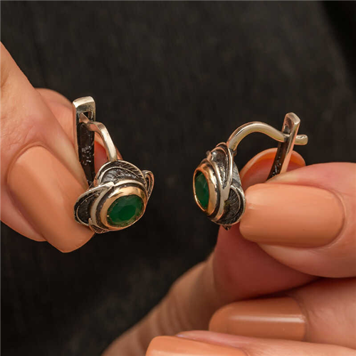 Silver Floral Patterned Authentic Women's Earrings Green stone floral patterned authentic earrings add an iconic touch to your style by combining traditional and modern styles. It harmonizes perfectly with both bohemian and classic styles. It is a perfect option as a birthday gift, Valentine's Day gift or a gift for mothers on special occasions. Silver green authentic earrings are made of 925 sterling silver. Rhodium plated on the silver. Rhodium plated silver authentic women's earrings preserve their shine for a long time and oxidation is delayed. Like all women's earrings, silver authentic women's earrings are produced by hand. Due to silver and precious stones, there may be a ± 10% deviation in the average product weight. Width: 1.20 cm Length: 1.50 cm Average Weight: 6.00 gr.