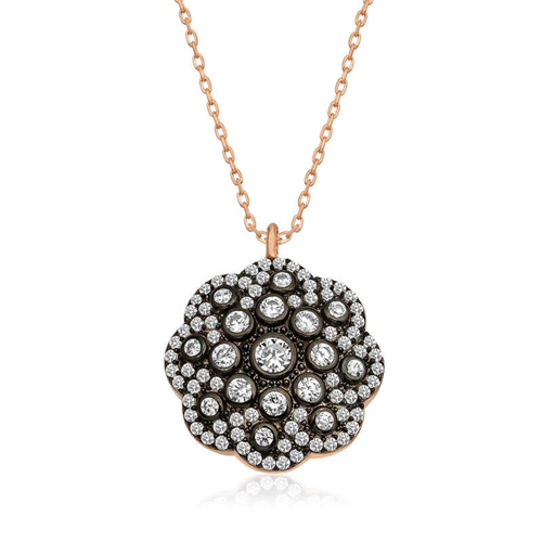 Silver Diamond Mounted Flower Women's Necklace Silver diamond mounting design necklaces, reflecting sparkle and ostentation, aim to add elegance to your style. Modernly designed silver diamond mounting flower patterned necklaces will highlight your feminine elegance. These necklaces integrate with your beauty both in daily use and at special occasions, revealing eye-catching elegance. Diamond elegance continues to convey love, passion and vitality at all ages and in all places. Beautiful silver necklaces that evoke admiration with their showiness or highlight feminine refinement with their simply elegant design are waiting for you. Rose plating is applied to silver. Rose plated silver women's necklace models preserve their shine for a long time and oxidation is delayed. The stones on the silver necklace model are zircon. The average length of the silver chain is 45 cm. This diamond-mounted flower necklace is handmade. Due to silver and precious stones, there may be a ± 10% deviation in the specified product weight. Width: 1.80 cm Length: 1.80 cm Average Weight: 3.60 gr.
