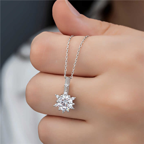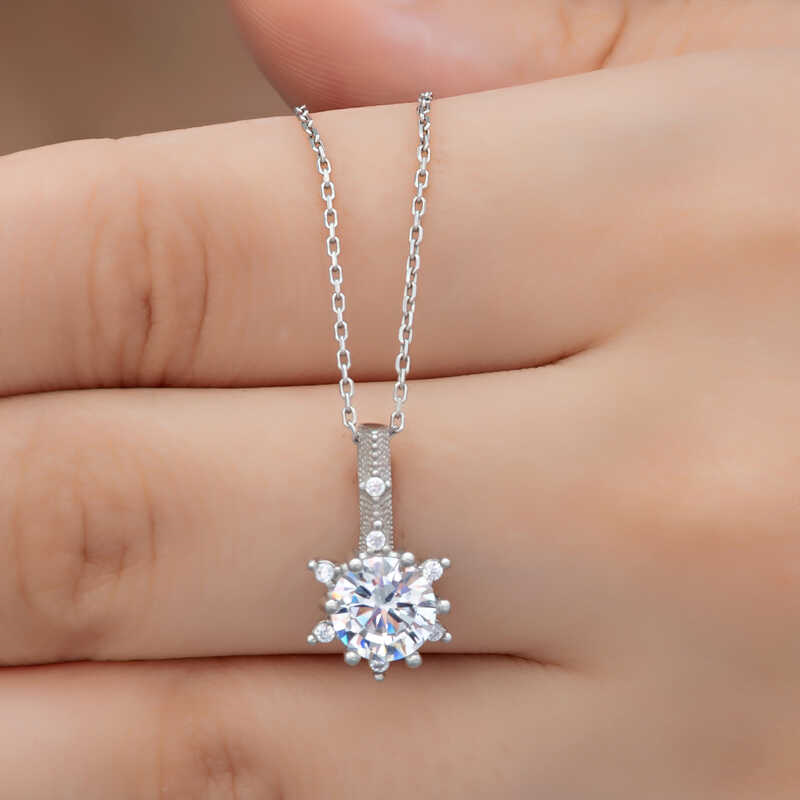 Silver Flower Patterned Women's Necklace Necklaces, which are among the top choices of women on special occasions, are the savior of many women. The floral patterned necklace that you can combine with any outfit, from sporty to classic, is here at a very affordable price. You can complete your elegance with this model, supported by small white zircon stones embroidered on an elegant flower motif. This necklace model is made of 925 sterling silver. Rhodium plated silver. Rhodium-plated silver necklace models preserve their shine for a long time and oxidation is delayed. As with all silver necklaces, the silver flower patterned women's necklace model is produced entirely by hand. There may be ± 10% deviation in the average product weight due to silver and precious stones. Width: 0.90 cm. Length: 1.50 cm. Average Weight: 3.00 gr.