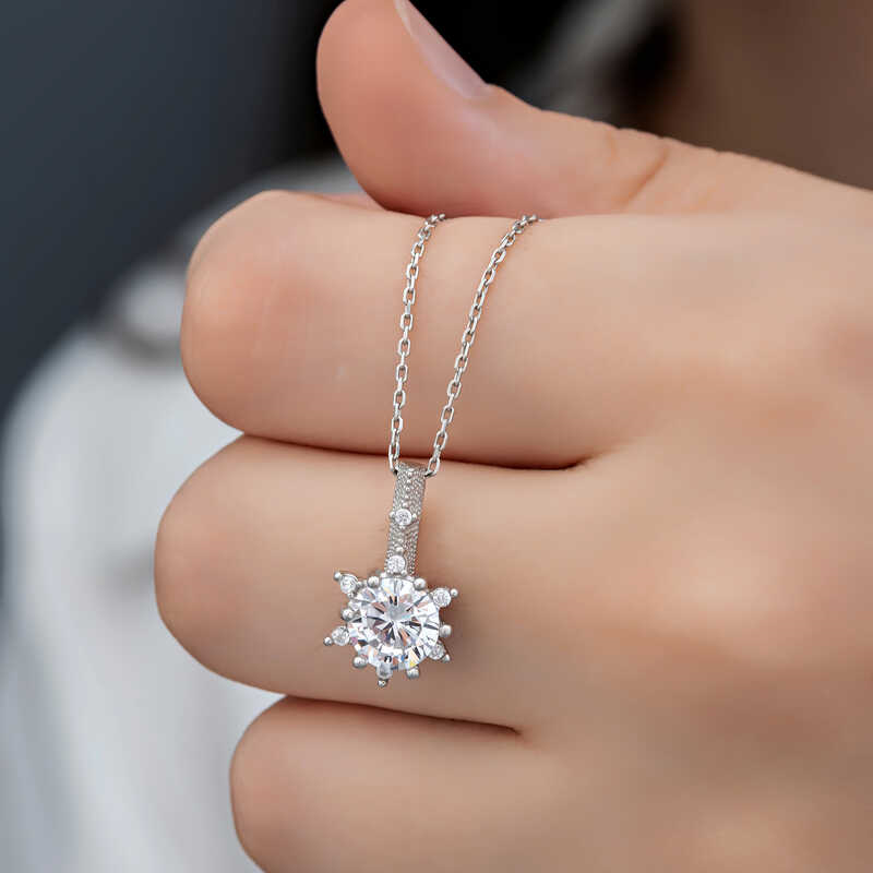Silver Flower Patterned Women's Necklace Necklaces, which are among the top choices of women on special occasions, are the savior of many women. The floral patterned necklace that you can combine with any outfit, from sporty to classic, is here at a very affordable price. You can complete your elegance with this model, supported by small white zircon stones embroidered on an elegant flower motif. This necklace model is made of 925 sterling silver. Rhodium plated silver. Rhodium-plated silver necklace models preserve their shine for a long time and oxidation is delayed. As with all silver necklaces, the silver flower patterned women's necklace model is produced entirely by hand. There may be ± 10% deviation in the average product weight due to silver and precious stones. Width: 0.90 cm. Length: 1.50 cm. Average Weight: 3.00 gr.