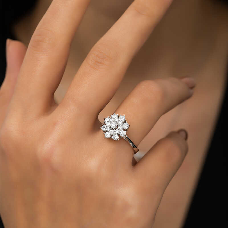Silver Flower Patterned Women's RingRings, which are among the top choices of women on special occasions, are the savior of many women. The floral patterned ring that you can combine with any outfit, from sporty to classic, is here at a very affordable price. You can complete your elegance with this model supported by small white zircon stones embroidered on an elegant flower motif. This ring model is made of 925 sterling silver. Rhodium plated silver. Rhodium plated silver ring models preserve their shine for a long time and oxidation is delayed. As with all silver rings, the silver flower patterned women's ring model is produced entirely by hand. There may be ± 10% deviation from the average product weight due to silver and precious stones.Width: 1.30 cm. Length: 1.30 cm. Average Weight: 2.96 gr.