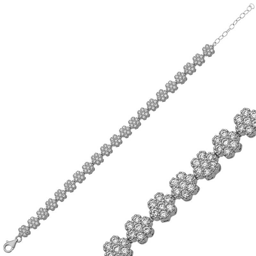 Silver Flower Women's BraceletThe most special and elegant way to express your feelings to your loved ones is to send them stylish, colorful and fragrant flowers. Flowers, which are among the gifts to be given on special occasions, this time found meaning with a silver bracelet. Crafted with the highest quality, brightest, and most sparkling stones, the silver flower women's bracelet is waiting for those who want to express their love once again, for those who want to say "you are a flower." This specially designed white flower women's bracelet is made of 925 sterling silver. Rhodium plated silver bracelets preserve their shine for a long time and oxidation is delayed. The white stones on the bracelet are zircon. Like all women's silver bracelets, the silver white flower women's bracelet is also handmade. Due to silver and precious stones, there may be ± 10% deviation in the specified product weight.Width: 0.50 cmLength: 20.50 cmAverage Weight: 9.15 gr.