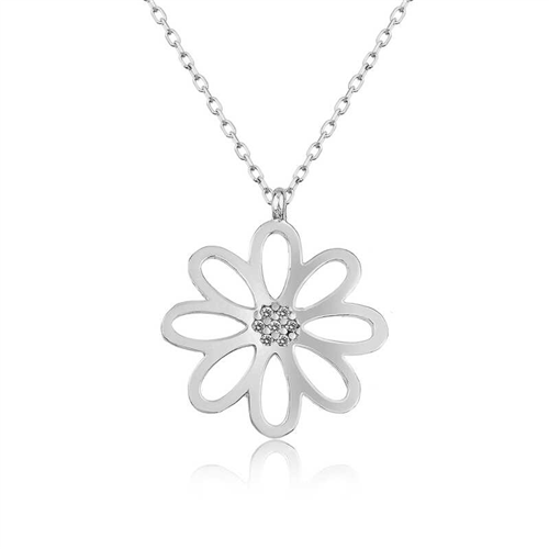 Silver Flower Women's Necklace Why not express your feelings to your loved ones with an elegant flower patterned necklace? This stylish necklace, which is among the gift options that you can send to her on special occasions, is among the best ways to make your loved ones happy. Crafted with the highest quality and most sparkling stones, the silver flower women's necklace is waiting for those who want to express their love once again, for those who want to say "you are a flower." This specially designed silver flower women's necklace is made of 925 sterling silver. Rhodium plating is applied on the silver. Rhodium-plated silver women's necklace models preserve their shine for a long time and oxidation is delayed. The average silver chain length is 45 cm. Like all women's silver necklace models, the silver flower women's necklace is also handmade. Due to silver and precious stones, there may be a ± 10% deviation in the specified product weight. Width: 2.00 cm Length: 2.00 cm Average Weight: 2.15 gr.