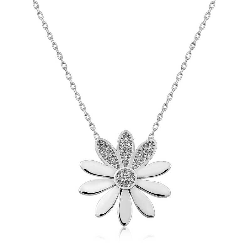 Silver Flower Women's Necklace The most special and elegant way to express your feelings to your loved ones is to send them stylish, colorful and fragrant flowers. Flowers, which are among the gifts to be given on special occasions, have been designed with a different interpretation this time. The flower necklace, designed with three petals with stones and the other petals without stones, is waiting for those who want to express their love once again and those who want to say "you are a flower." This specially designed flower women's necklace is made of 925 sterling silver. Rhodium plated on the silver. Rhodium plated silver women's necklace models preserve their shine for a long time and oxidation is delayed. The stones on the necklace are zircon. Like all women's silver necklace models, the silver flower women's necklace is produced by hand. Due to silver and precious stones, there may be a ± 10% deviation in the specified product weight. Width: 1.70 cm Length: 1.70 cm Average Weight: 2.27 Gr Chain Length: 45 cm