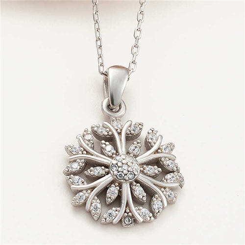 Silver Flower Women's Necklace The most special and elegant way to express your feelings to your loved ones is to send them stylish, colorful and fragrant flowers. Flowers, which are among the gifts to be given on special occasions, have been designed with a different interpretation this time. The flower necklace is waiting for those who want to express their love once again, for those who want to say "you are a flower." This specially designed flower women's necklace is made of 925 sterling silver. Rhodium plated silver. Rhodium plated silver women's necklace models preserve their shine for a long time and oxidation is delayed. The stones on the necklace are zircon. Like all women's silver necklace models, the silver flower women's necklace is produced by hand. Due to silver and precious stones, there may be ± 10% deviation in the specified product weight. Width: 1.60 cm Length: 2.00 cm Chain Length: 45 cm Average Weight: 4.50 gr.