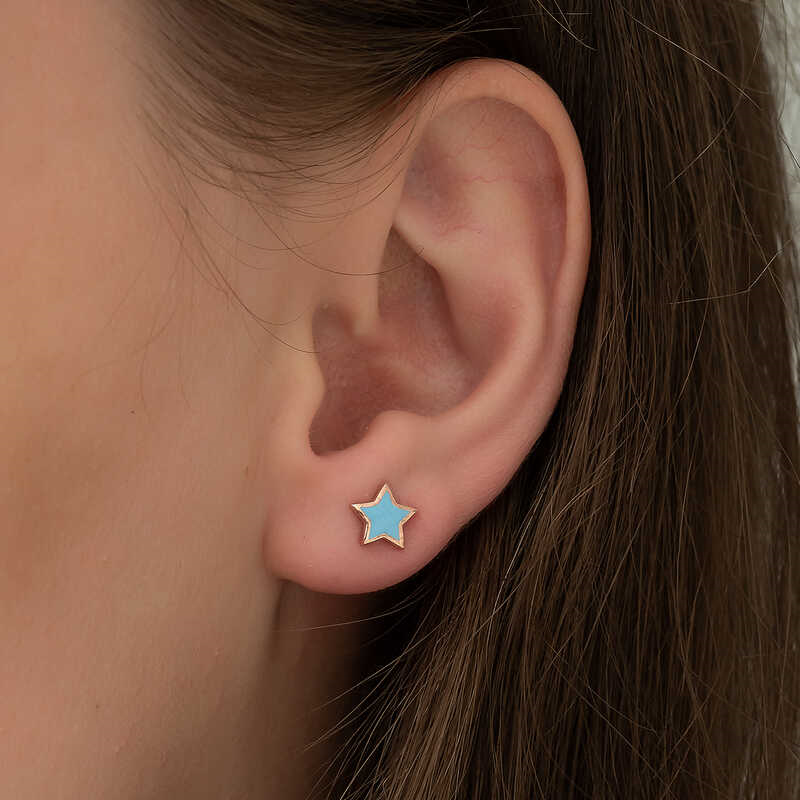 Silver Phosphorescent Blue Star EarringsSilver studded earring models are among the most special jewelry items that you can use at any time of the day. You can start accentuating your style with silver studded earrings, which reflect the shine of silver in the best way possible and attract attention with their lightweight structure. Phosphorescent blue star earrings, preferred by women who are sensitive about their appearance and want to stand out with their style, are among the original models that can adapt to the style of young people and women who feel young. Studded earrings, which are among the timeless designs, allow you to revitalize your style in line with fashion. They are a perfect option for a birthday gift, Valentine's Day gift or on special occasions. Silver phosphorescent blue star women's earrings are made of 925 sterling silver. Rose plated silver. Rose plated silver earring models preserve their shine for a long time and oxidation is delayed. Like all women's earrings, this earring model is produced by hand. Due to silver and precious stones, there may be a ± 10% deviation in the average product weight.Width: 0.80 cmLength: 0.80 cmAverage Weight: 1.25 gr.