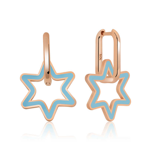 Silver Phosphorescent Blue Star EarringsThis collection includes the most special earring models designed in accordance with fashion for women who care about their appearance. You can create a dazzling and fascinating style with earring models, each appealing to a different style and use. Phosphorescent blue star earrings are among the original models that can adapt to the style of young people and women who feel young. This earring is a perfect option for a birthday gift, Valentine's Day gift or on special occasions. Silver phosphorescent blue star women's earrings are made of 925 sterling silver. Rose plated silver. Rose plated silver earring models preserve their shine for a long time and oxidation is delayed. Like all women's earrings, this earring model is also handmade. Due to silver and precious stones, there may be a ± 10% deviation in the average product weight.Width: 1.70 cmLength: 2.70 cmAverage Weight: 6.50 gr.