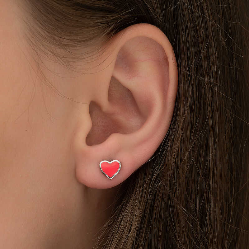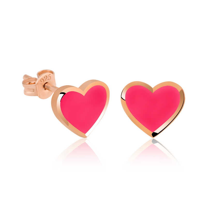 Silver Phosphorescent Pink Heart EarringsSilver studded earring models are among the most special jewelry items that you can use at any time of the day. You can start accentuating your style with silver studded earrings, which reflect the shine of silver in the best way possible and attract attention with their lightweight structure. Fluorescent pink heart earrings, preferred by women who are sensitive about their appearance and want to stand out with their style, are among the original models that can adapt to the style of young women and those who feel young. Studded earrings, which are among the timeless designs, allow you to revitalize your style in line with fashion. They are a perfect option for a birthday gift, Valentine's Day gift or on special occasions. Silver phosphorescent pink heart women's earrings are made of 925 sterling silver. Rose gold plated on silver. Rose gold plated silver earring models preserve their shine for a long time and oxidation is delayed. Like all women's earrings, this earring model is produced by hand. Due to silver and precious stones, there may be a ± 10% deviation in the average product weight.Width: 0.80 cmLength: 0.70 cmAverage Weight: 1.20 gr.