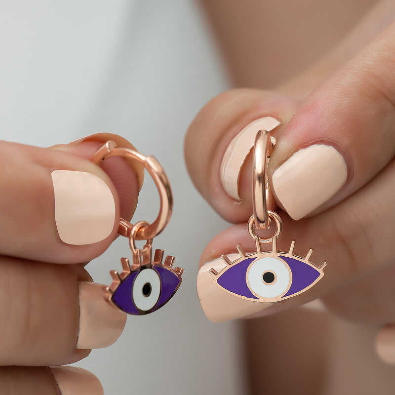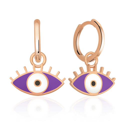 Silver Phosphorescent Purple Eye EarringsThis collection includes the most special earring models designed in accordance with fashion for women who care about their appearance. You can create a dazzling and charming style with earring models, each appealing to a different style and use. Phosphorescent purple eye earrings are among the unique models that can adapt to the style of young people and women who feel young. This earring is a perfect option for a birthday gift, Valentine's Day gift or on special occasions. Silver phosphorescent purple eye women's earrings are made of 925 sterling silver. Rose plated silver. Rose plated silver earring models preserve their shine for a long time and oxidation is delayed. Like all women's earrings, this earring model is also handmade. Due to silver and precious stones, there may be a ± 10% deviation in the average product weight.Width: 1.70 cmLength: 2.50 cmAverage Weight: 5.25 gr.