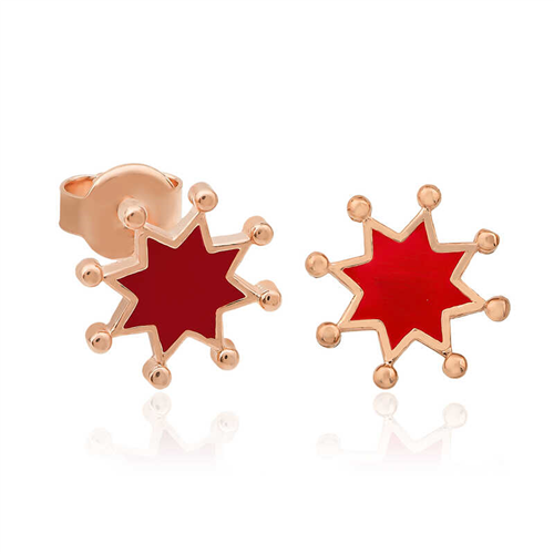 Silver Phosphorescent Red Star Earrings Silver studded earring models are among the most special jewelry items that you can use at any time of the day. You can start accentuating your style with silver studded earrings, which reflect the shine of silver in the best way possible and attract attention with their lightweight structure. Phosphorescent red star earrings, preferred by women who are sensitive about their appearance and want to stand out with their style, are among the original models that can adapt to the style of young people and women who feel young. Studded earrings, which are among the timeless designs, allow you to revitalize your style in line with fashion. They are a perfect option for a birthday gift, Valentine's Day gift or on special occasions. Silver phosphorescent red star women's earrings are made of 925 sterling silver. Rose plated silver. Rose plated silver earring models preserve their shine for a long time and oxidation is delayed. Like all women's earrings, this earring model is produced by hand. Due to silver and precious stones, there may be a ± 10% deviation in the average product weight. Width: 1.00 cm Length: 1.00 cm Average Weight: 1.20 gr.