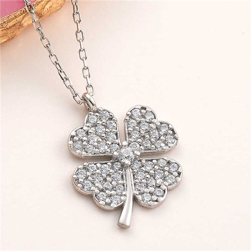 Silver Four-Leaf Clover Women's Necklace The four-leaf clover is considered a symbol of good luck in all cultures. The first leaf symbolizes hope, the second faith, the third love, and the fourth leaf luck. This fourth leaf is very rare in nature. You can gift this meaningful necklace to the person you love and care about. This stylish necklace model is made of 925 sterling silver. Rhodium plating is applied to the silver. Rhodium-plated silver women's necklace models preserve their shine for a long time and oxidation is delayed. The silver chain on the necklace is 45 cm. Like all silver necklace models, the silver four-leaf clover necklace model is also produced entirely by hand. Due to silver and precious stones, there may be a ± 10% deviation from the average product weight. Width: 1.30 cm Length: 1.80 cm Average Weight: 2.00 gr.