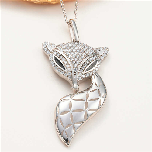 Silver Fox Women's Necklace We designed our sweetest, warm, lovely animal friends for you. This stylish necklace with its sparkling and different design is made of 925 sterling silver. Rhodium plated silver. Rhodium plated silver fox necklaces preserve their shine for a long time and oxidation is delayed. As with all silver necklaces, the entire silver fox women's necklace is produced by hand. Due to silver and precious stones, there may be ± 10% deviation from the average product weight. Earring Width: 2.20 cm Earring Length: 3.80 cm Average Weight: 4.80 gr