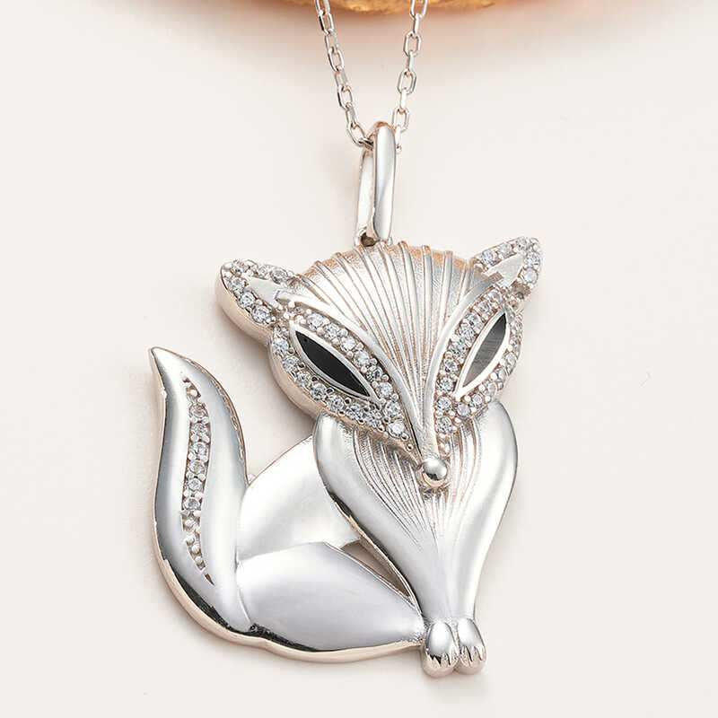 Silver Fox Women's Necklace We designed our sweetest, warm, lovely animal friends for you. This stylish necklace with its sparkling and different design is made of 925 sterling silver. Rhodium plated silver. Rhodium plated silver fox necklaces preserve their shine for a long time and oxidation is delayed. As with all silver necklaces, the entire silver fox women's necklace is produced by hand. Due to silver and precious stones, there may be ± 10% deviation from the average product weight. Earring Width: 2.40 cm Earring Length: 3.20 cm Average Weight: 6.00 gr