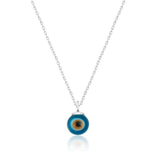Silver Rhodium Round Glass Eye Evil Eye Women's Necklace We designed the sparkling silver glass eye women's necklace model that will add elegance to your elegance for you, beautiful women. You will attract attention with this magnificent set. The glass eye evil eye necklace model is made of 925 sterling silver. Rhodium plated on silver. Rhodium plated silver women's necklace models preserve their shine for a long time. Designed by utilizing the harmony of zircon stones with glass stones, the product will also allow you to receive all the beneficial effects of the silver mine directly from your skin. The glass eye evil eye necklace is a suitable and beautiful gift option for New Year's, Mother's Day, special days and lovers. Like all silver women's necklace models, the silver glass eye evil eye women's necklace model is also handmade. There may be a ± 10% deviation in the average product weight due to silver and precious stones. Width: 0.50 cm Length: 0.50 cm Avg. Weight: 1.9 gr. Avg. Chain Length: 45.00 cm