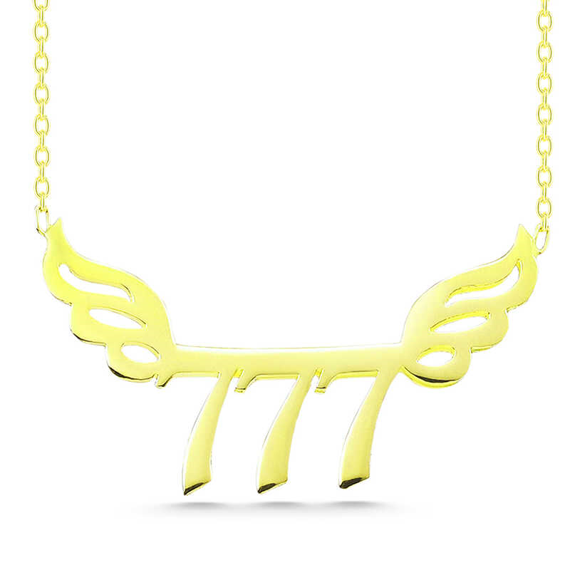 Silver Gold 777 Angel Number Women's Necklace The number 777 is believed to bring luck and happiness. It can also mean the number of angels. It is among the jewelry designs that can be gifted to the women you love on special occasions, considering this spiritual meaning. This stylish necklace is a perfect option for a birthday gift, a Valentine's Day gift or a gift for mothers on special occasions. The necklace is made of 925 sterling silver. Gold plated silver women's necklace models preserve their shine for a long time and oxidation is delayed. The average chain length is 45 cm. As with all silver women's necklace models, this silver 777 angel number women's necklace is also entirely handmade. Due to silver and precious stones, there may be a ± 10% deviation in the average product weight. Width: 2.80 cm Length: 1.60 cm Average weight: 1.60 gr