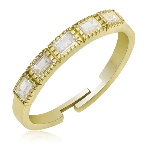 Silver Gold Adjustable Baguette Women's RingThis specially designed white stone baguette ring, which you can easily use in daily life, is made of 925 sterling silver. Gold plated on the silver. Gold plated women's silver ring models preserve their shine for a long time and oxidation is delayed. The stones on the ring are baguette. It is a perfect gift option for your loved one on birthdays, Valentine's Day and special occasions. As with all of our silver women's ring models, this baguette cut women's ring is entirely handmade. Due to silver and precious stones, there may be ± 10% deviation from the average product weight.Width: 2.00 cm.Length: 2.00 cm.Average Weight: 1.80 gr.