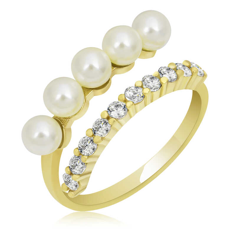 Silver Gold Adjustable Pearl Stone Women's RingFor young people and all women who feel young; the nobility of silver and pearl will reflect your elegance around you. The pearl women's ring model, which you and your loved ones will enjoy wearing, will also be one of the beautiful gifts with which you can share your love in terms of meaning. The silver pearl women's ring model is made of 925 sterling silver. Gold plating is applied on the silver. Gold-plated women's silver pearl rings preserve their shine for a long time and oxidation is delayed. The white stones on the ring are zircon. Like all silver women's rings, the silver pearl women's ring model is produced entirely by hand. Due to silver and precious stones, there may be a ± 10% deviation in the average product weight.Ring Width: 1.90 cmRing Length: 2.30 cmAverage Weight: 2.60 gr.