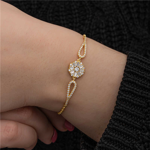 Silver and Gold Baguette Stone Women's Bracelet You can use our fashion-friendly silver baguette bracelet models in an elegant way both in your daily life and on special days and nights. You can complete your outfits with innovative products that appeal to the taste of women of all ages. With designs that each appeal to a different style, you can choose our models that suit your sporty, classic and alternative clothing styles. This stylish bracelet is a perfect option for a birthday gift, a Valentine's Day gift or for special occasions. The silver baguette stone women's bracelet is made of 925 sterling silver. This bracelet is gold-plated. Gold-plated products preserve their shine for a long time and delay oxidation. Like all silver women's bracelet models, the silver baguette stone women's bracelet model is also handmade. Due to silver and precious stones, there may be a ± 10% deviation in the average product weight. Baguette Diameter: 1.10 cm Bracelet Chain Length: 19 cm Average Weight: 4.00 gr.
