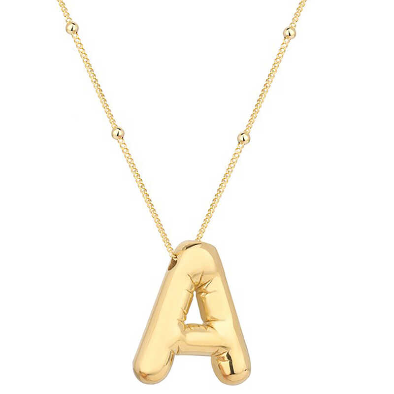Silver Gold Balloon Letter A Women's Necklace With silver letter necklaces, those who are precious to you are always with you... Adorn your loved one's neck with love with this special necklace model that young lovers can choose on special occasions. A silver letter necklace that your loved ones will wear with pleasure will be one of the most meaningful gifts. The balloon letter women's necklace model is made of 925 sterling silver. Gold plated on silver. Gold plated silver women's necklace models preserve their shine for a long time. The ball chain that comes with the necklace is completely silver and is 45 cm long. Like all of our products, the silver women's letter necklace model is produced by hand. Due to silver and precious stones, there may be a ± 10% deviation in the average product weight. Necklace Width: 1.80 cm Necklace Length: 1.90 cm Necklace Thickness: 0.70 cm Average Weight: 6.50 gr