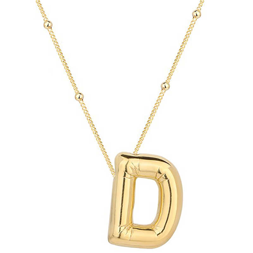 Silver Gold Balloon Letter D Women's Necklace With silver letter necklaces, those who are precious to you are always with you... Adorn your loved one's neck with love with this special necklace model that young lovers can choose on special occasions. A silver letter necklace that your loved ones will wear with pleasure will be one of the most meaningful gifts. The balloon letter women's necklace model is made of 925 sterling silver. Gold plated on silver. Gold plated silver women's necklace models preserve their shine for a long time. The ball chain that comes with the necklace is completely silver and is 45 cm long. Like all of our products, the silver women's letter necklace model is produced by hand. Due to silver and precious stones, there may be a ± 10% deviation in the average product weight. Necklace Width: 1.80 cm Necklace Length: 1.90 cm Necklace Thickness: 0.70 cm Average Weight: 6.50 gr